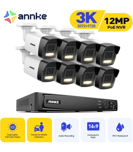 ANNKE Poe Kit di Videosorveglianza Esterni nvr con 8 Telecamere Intelligenti Doppia Luce Visione Notturna Allarme E-Mail Sistema Telecamere Sicurezza