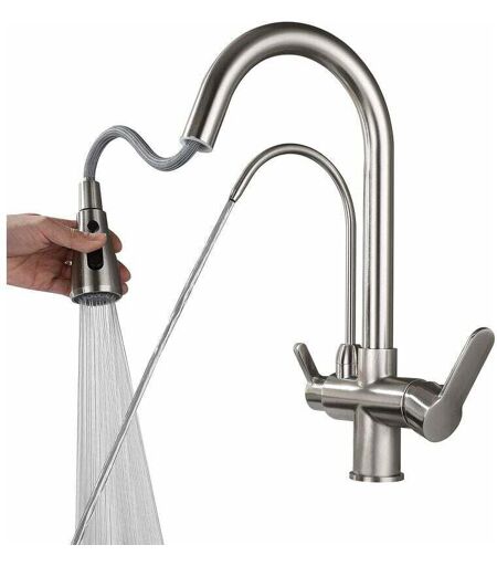 FLITI Rubinetto da cucina con maniglia singola, rubinetto da cucina in ottone a tre vie, miscelatore per acqua calda e fredda, beccuccio girevole a due