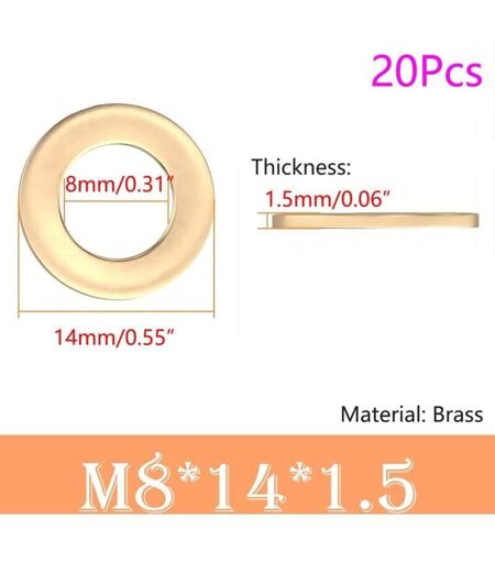 AIPERQ Rondella piatta da 20 pezzi, 8 mm x 14 mm, rondella di tenuta circolare, rondelle ad anello, rondella piatta in ottone per la tenuta delle viti