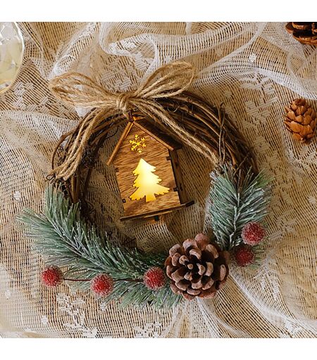 AIPERQ Couronne de Noël suspendue à une porte, couronne suspendue à une fenêtre, décoration suspendue en rotin, décoration de magasin, décorations de Noël