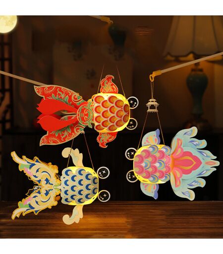 AIPERQ 9 pièces de lanternes portables, petites lanternes de style ancien en forme de poisson koï avec lumières pour stands, lanternes lumineuses faites à