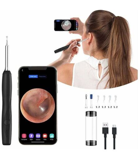 AIPERQ Otoscopio endoscopio auricolare con telecamera auricolare 4MP HD 3,6 mm Kit per la pulizia dell'orecchio con 6 luci a LED Pulitore auricolare 1600P