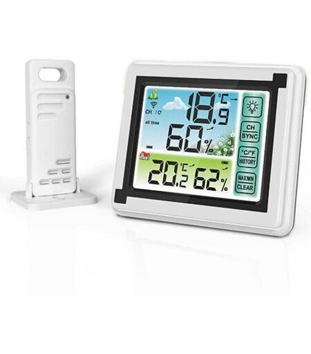 Betterlife Store è il posto giusto per te! Se non sei soddisfatto del prodotto, contattami prima e non lasciare un feedback negativo alla leggera. Grazie, buona giornata Negozi di qualità sono al tuo servizio! Betterlife Caratteristiche del prodotto: Misura la temperatura e l'umidità interna ed esterna, conversione Celsius e Fahrenheit Funzione di memoria della temperatura e dell'umidità più alte e più basse È possibile visualizzare i dati storici di temperatura e umidità Collegare fino a 3 unità esterne (set convenzionale con un'unità esterna) Due magneti altamente magnetici sul retro dell'unità principale possono essere fissati a oggetti metallici Sul retro dell'host è presente una staffa che può essere posizionata in posizione orizzontale Controllo con pulsante touch ad alta sensibilità, facile da usare Indicatore di comfort, indicatore di tendenza di temperatura e umidità Display LCD a colori HTN widescreen ad alta definizione senza angolazione Con retroilluminazione, si spegne ...