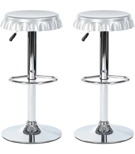 BAKAJI Set 2 Sgabelli Bar Cucina Seduta Forma Tappo Bottiglia Sgabello Girevole Silver