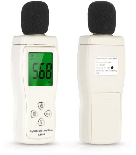 1. Mini sonómetro digital con rendimiento estable y fiable. 2. Amplio rango de medición de 30 dB a 130 dBA. 3. Frecuencia de muestreo rápida o lenta a su elección: 125 ms o 1 s. 4. Función de retención de datos, medición de valores máximos y mínimos. 5. Pantalla LCD retroiluminada, fácil de usar por la noche. 6. Indicación de batería baja, función de apagado automático y manual. 7. Compacto y ligero, fácil de sostener y transportar. 8. Equipado con una bola de esponja para la protección del sensor. 9. Mini sonómetro digital con rendimiento estable y fiable. Amplio rango de medición: de 30 dB a 130 dBA. 10. Frecuencia de muestreo rápida o lenta: 125 ms o 1 s. Función de retención de datos y medición de valores máximos y mínimos. 11. Pantalla LCD retroiluminada, ideal para uso nocturno. 12. Mini sonómetro digital estable y fiable. 13. Amplio rango de medición: de 30 dB a 130 dBA. Compacto y ligero, fácil de transportar. 14. Frecuencia de muestreo: rápida o lenta: 125 ms o 1 s. Incluye ...