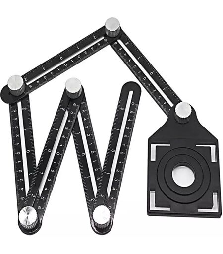 Righello di misurazione multiangolo con foro di posizionamento, strumento di misurazione angolare in lega di alluminio a 6 lati, strumento di misurazione per modelli, nero Caratteristiche: 📏 [Ultima versione] Questo è uno strumento di misurazione con fori di posizionamento. Utilizza questo righello di misurazione multiangolo per regolare la posizione di foratura e marcare con precisione le piastrelle. Il righello di misurazione può anche essere facilmente piegato e riposto per risparmiare spazio. Può essere facilmente trasportato in qualsiasi cantiere. Ideale per misurare l'area di mattoni, carta, pietre, piastrelle, legno e altri materiali. 📏 [Nuovo prodotto con materiali e design migliorati] Righello di misurazione multifunzionale, realizzato in lega di alluminio di alta qualità e molto resistente all'usura. Dotato di manopole in metallo. Queste manopole sono molto più resistenti di quelle in plastica e quindi più durevoli. I bordi arrotondati prevengono gli infortuni. Non ...