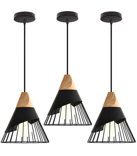 AXHUP 3X Lampadario a Sospensione, Vintage Lampada da Soffitto con Paralume in Legno e Metallo, Illuminazione di Form a Badminton per Cucina Ristorante