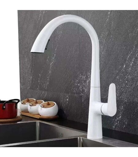 ULISEM Miscelatore da cucina con doccetta estraibile bianco Rubinetto da cucina girevole a 360° Rubinetto da cucina estraibile in ottone - Bianco