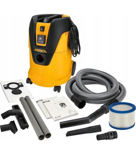 PERFORMANT : Aspirateur industriel professionnel avec un moteur et une turbine puissants de 1000 watts, qui protège des poussières dangereuses; COMPATIBLE : L'adaptateur de tuyau fourni est compatible avec toutes les ponceuses électriques Mirka (DEROS, DEOS, LEROS); Fonction marche-arrêt automatique intégrée. POLYVALENT : Utilisable comme aspirateur avec sac et filtre pour nettoyer les sols et les surfaces, pour poncer avec la ponceuse Mirka, ainsi que comme aspirateur à eau sans sac. COMPACTE & MOBILE : Design compact et poids léger; Avec poignée de transport intégrée; Câble d'alimentation de 5 m pour une flexibilité maximale lors du travail CONTENU DE LA LIVRAISON : Mirka 1025 L P&C; Aspirateur, tubes télescopiques 2 x 50cm, suceur pour fentes, suceur pour sols, suceur universel, tuyau d'aspiration, adaptateur d'outil pour ponceuses Mirka, élément filtrant, sac en tissu tressé ...