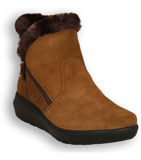 stivaletti con zeppa in pelle scamosciata da donna foderati in calda pelliccia ecologica non si teme la€™inverno. la zip laterale obliqua e funzionale ed ornamentale assicura un facile indosso. la suola rialzata e particolarmente adatta a tenere ...