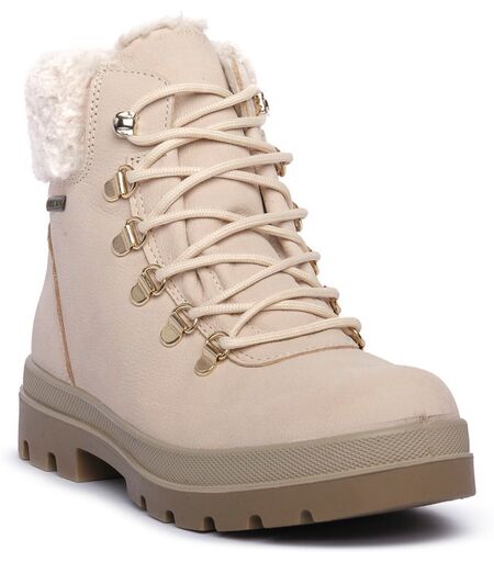 polacchino da donna con la tomaia in pelle nabuk e pelliccia ecologica foderati con tessuto enval-tex traspirante e impermeabile. suola in gomma che offre comodita e supporto nella camminata per tutto il giorno. made in italy. colore: panna. ...