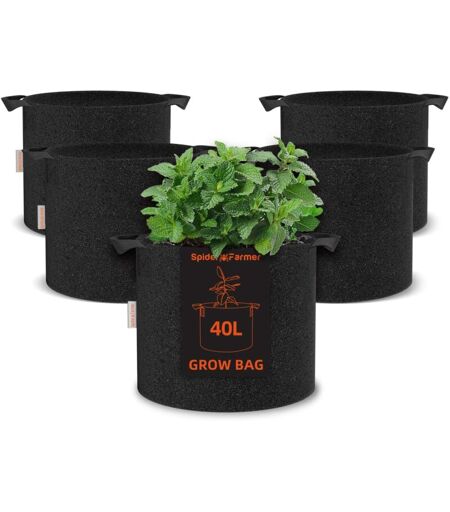 SPIDER FARMER Lot de 5 sacs de culture de 11 gallons 40L avec poignées en tissu pour plantes d'aération de jardin