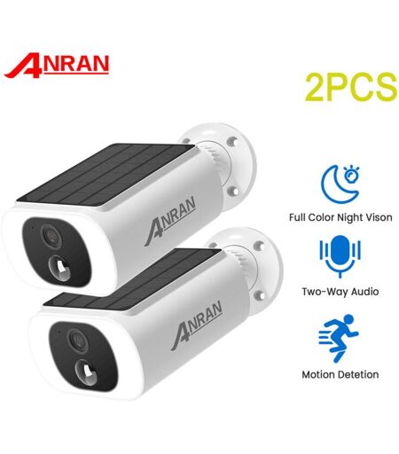 ANRAN - Videocamere di sorveglianza per interni e esterni Telecamera Wi-Fi Esterno Batteria Senza Fili Con Solare Pannello, 3MP con Visione Notturna