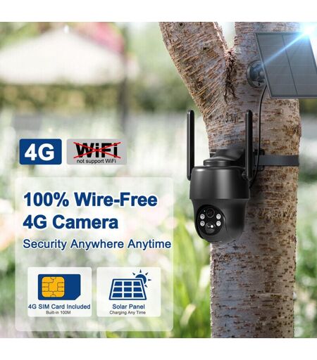 Descrizione Generale Questa telecamera di sorveglianza esterna wireless 3G/4G, alimentata ad energia solare, è progettata per funzionare in zone senza Wi-Fi. Viene fornita con una scheda SIM 4G e una scheda SD da 32 GB, permettendo un'installazione facile ovunque sia disponibile la copertura cellulare. Grazie alla visione notturna a colori e alla risoluzione Super HD 2K, beneficerete di immagini chiare, sia di giorno che di notte. Specifiche Tecniche Connessione 3G/4G-LTE con scheda SIM inclusa (100 MB di dati gratuiti) Risoluzione Super HD 2K (3MP) per immagini nitide Rotazione orizzontale 355° e verticale 90° per una copertura a 360° Visione notturna a colori Sensore di movimento PIR per rilevamento intelligente Memorizzazione su scheda micro SD (fino a 128 GB, non inclusa), con scheda da 32 GB preinstallata Compatibile con Alexa Caratteristiche del Prodotto Telecamera di Sicurezza Senza Fili 4G LTE con Pannello Solare Liberati dai cavi e dal Wi-Fi! Questa telecamera di sicurezza ...
