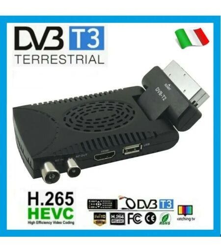 LGVSHOPPING - Decoder Digitale Terrestre Scart 4K Dvb-T2 Full hd hdmi Hevc H265 10 bit dvb T3