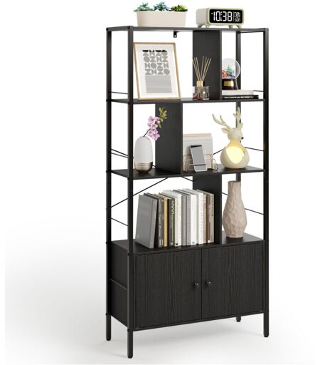 FUIENKO Libreria Scaffale a 4 Piani con 2 Porte Bealife Mobilio Riordino a piedi 11,4 cm Struttura in acciaio per Ufficio Salotto Camera da Letto 74 x 30 x