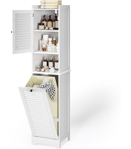 BEALIFE Mobile Colonna da Bagno Mobili bagno su Piedi con Piani Regolabili 1 Cesto per Biancheria Sporca Rimovibile 1 Nicchia 1 Porta Bianco 40 x