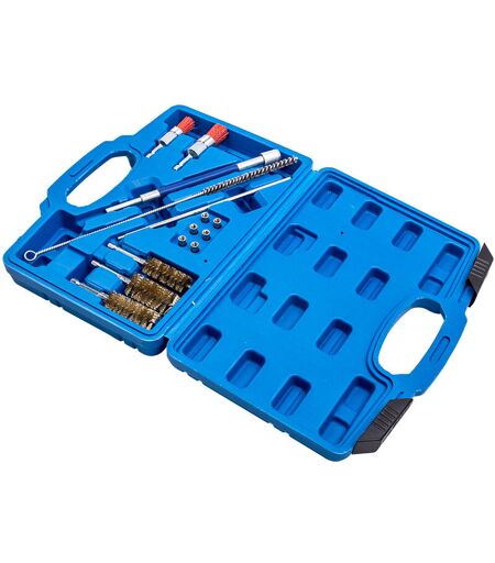 SET DI PULIZIA PER INIETTORI 14 PZ ATTREZZO UTENSILE Questo set di pulizia per iniettori, composto da 14 pezzi, è la scelta ideale per mantenere puliti gli iniettori del vostro motore diesel. Adatto per una vasta gamma di veicoli Questi strumenti sono realizzati in acciaio al carbonio al fine di garantire resistenza e durata. Il kit fornisce tutto il necessario per una pulizia efficiente degli iniettori e della loro superficie di alloggiamento, da effettuare prima dell'installazione di nuovi iniettori. La consegna include: 14-pcs: 3x Spazzole in filo di acciaio. Rivestito in ottone. Per la rimozione di residui di combustione negli alloggiamenti dell'iniettore. 2x Spazzole in silicone e nylon. Per la pulizia delle superfici di seduta dell'iniettore nella testa cilindrica. 1x Prolunga con mandrino rapido per spazzole. 6x Tappi di chiusura dell'iniettore per sigillare la camera di combustione durante il processo di pulizia. 1x Asta di montaggio/smontaggio per inserire e rimuovere i tappi ...