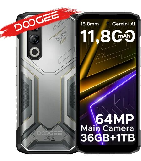DOOGEE Blade20 Max Telefono robusto 6.6" 120Hz 36Gb Ram (12+24) 1Tb Rom Gemini Ai 11800Mah Batteria Android 15 Helio G100 Smartphone