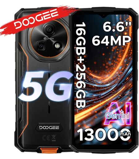 DOOGEE Fire 7 5g Telefono robusto Gemini Ai 16Gb (4+12) 256Gb 13000Mah Batteria Dimensity 6300 Smart Phone Nfc Android 15 64Mp Fotocamera