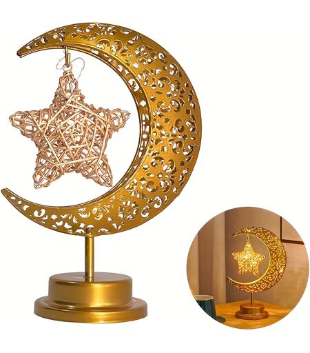 TEMU Shenzhi Tech Metal Rattan Night Light - Decorative Led Lamp With Golden & , Bedroom, Kitchen Table, Or Desk Decor, Boho Home Ambient Lighting, Table Lamp