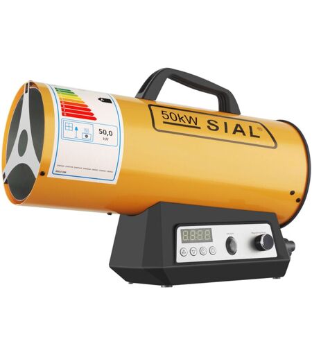 SIAL Riscaldatore a gas, apparecchio di riscaldamento a gas, con termostato elettronico/spegnimento automatico, 50 kW giallo Q50E -