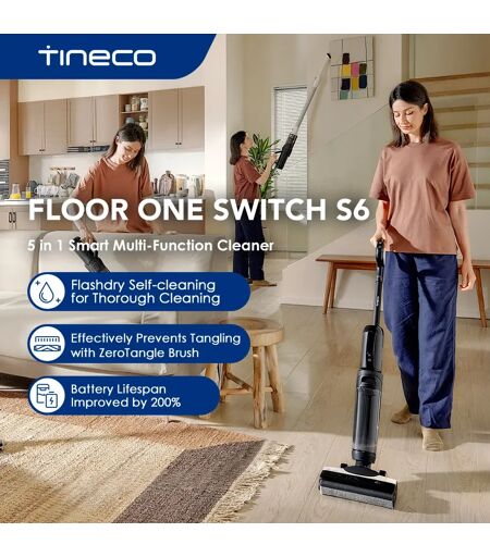 TINECO Floor One Switch S6 Aspirapolvere asciutto e bagnato Lavapavimenti 5 in 1 Autopulente Flash Pulizia a secco a doppio bordo Tutta la casa