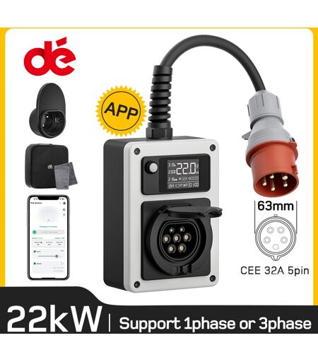 dé Wallbox Mobile 22kW con APP veicolo elettrico CEE spina rossa a presa di tipo 2 stazione di ricarica per veicoli elettrici trifase 32A ...