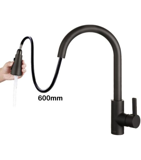 COREE Rubinetto Cucina Miscelatore a Collo di Cigno Cromato con Cestello Estraibile Rotante 360° per Lavello in Acciaio Inossidabile 2 Modalità Nero