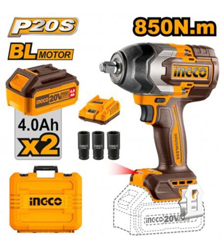 INGCO Avvitatore ad impulsi 850 Nm 20V (2x4.0Ah) CIWLI2085