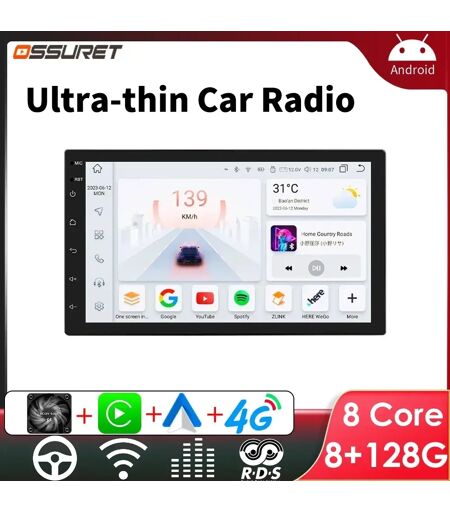 OSSURET 2DIN Android Ultra-sottile Autoradio Video Audio Stereo per auto universale 7 pollici 2 Din Touch Screen GPS Autoradio Lettore multimediale per auto