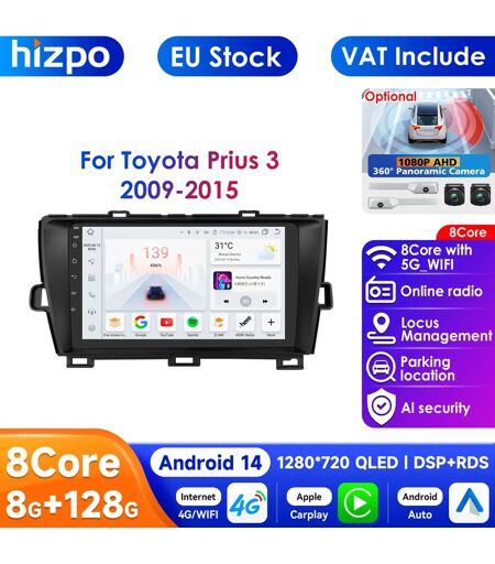 HIZPO QLED DSP 8G + 128G 2Din Android 14 per Toyota Prius XW30 2009-2015 Autoradio Lettore Video Multimediale GPS Navi Stereo Carplay 4G BT