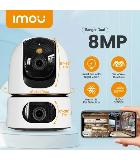 Telecamera IP IMOU Ranger Dual 8MP WIFI Dual Lens 3 + 5MP 360 ° Telecamere di sorveglianza PT per interni con rilevamento di animali domestici con conversazione bidirezionale ...