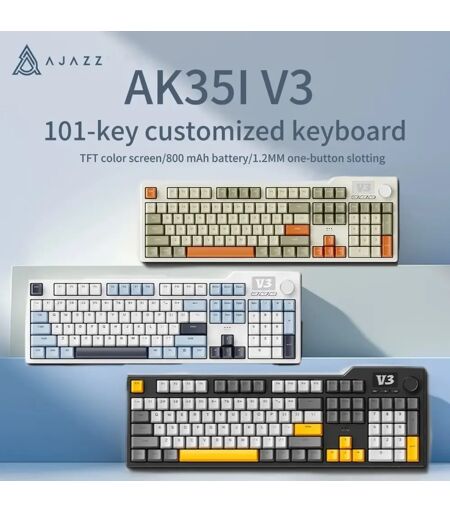 Ajazz Tastiera da gioco cablata con chiave meccanica full-size AK35iV3, interruttore per sale marino, interfaccia di ricarica di tipo C retroilluminata bianca, estratto di copritasto