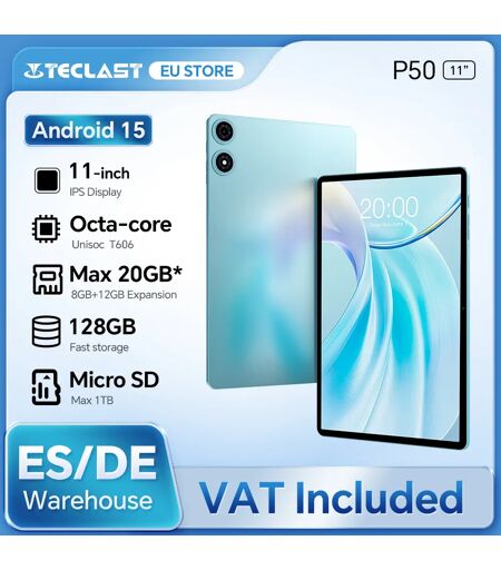 Teclast P50 Tablet Android 14 11"IPS Max 14GB RAM 128GB ROM Unisoc T606 8 core 13MP Fotocamera 8000mAh Type-C 4G LTE SempliV Rheinland ...