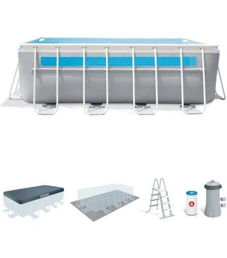Intex piscina fuori terra con struttura rettangolare "prisma frame clearview" grigio chiaro 400x200x122 cm - cod. 26770np