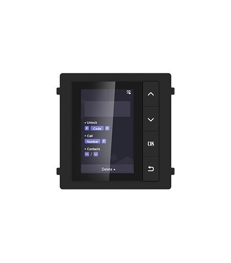 Hikvision DS-KD-DIS. Modulo con display per videocitofono, funzione sblocca porta tramite codice PIN, chiamata per postazione interna tamite elenco dei contatti visualizzato sul display. ...