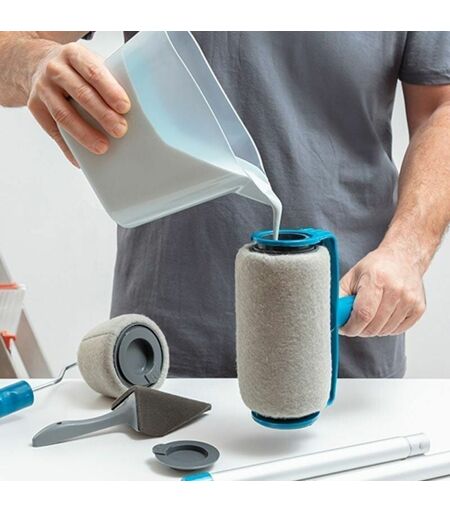 Set di rulli per vernice antigoccia ricaricabili La star dello shopping in TV è il rullo per vernice più comodo al mondo. Ti consentirà di verniciare le tue superfici in pochissimo tempo, in modo professionale, grazie a strati lisci e uniformi. In questo modo ritinteggiare una parete, un soffitto o un cancello diventa un gioco da ragazzi. Una volta riempito, puoi verniciare fino a 25 m² senza fermarti, senza il rischio di schizzi e quindi senza sporcarti. Molto pratico, questo sistema fa risparmiare tempo prezioso: non c'è bisogno di coprire il pavimento o i mobili. Questo rullo per pittura 2.0 è dotato di numerosi accessori: un tampone angolare, ideale per i punti difficili da raggiungere o per realizzare angoli e bordi degni di un professionista. Un beccuccio per versare la vernice nel rullo senza dover trasportare il grande barattolo di vernice. Una barra di prolunga per i soffitti o per la parte superiore delle pareti, se non vuoi salire sulla scala a pioli. Un secondo rullo di ...