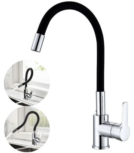 YMYNY Rubinetto cucina flessibile con beccuccio girevole alto, miscelatore lavello flessibile, rubinetto lavello monoforo cromato e nero con acqua calda e