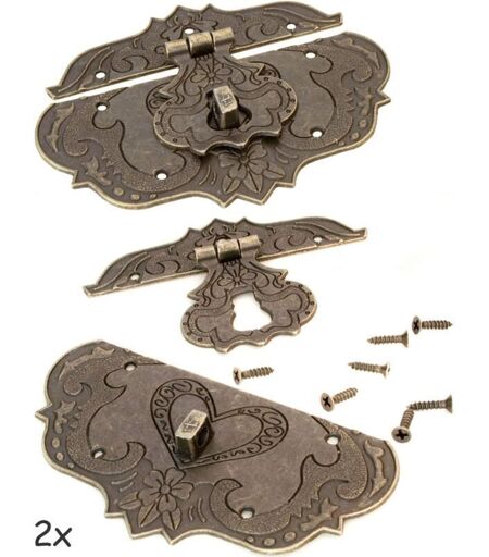 KZQ 76 x 56 mm), set di 2 ganci in ferro bronzo antico, chiavistelli per mobili, ferramenta per lucchetti, serrature per bauli e scatole scorrevoli