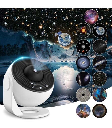 【Proiettore planetario stellare】Questo proiettore galattico per la camera da letto è dotato di un kit con 13 scenari di visualizzazione: Sistema solare, Terra, Luna, Via Lattea, Galassia, Galassia di Andromeda, NGC4302-NGC4298, Campo profondo di Hubble, M60-UCD1, Nebulosa Nord America, Montagna mistica e Piccola Nube di Magellano, che possono essere posizionati in soggiorno o in camera da letto per aggiungere un tocco di tecnologia alla tua casa. 【Proiettore planetario HD realistico】Questo proiettore planetario stellare è dotato di un kit con 13 dischi di pianeti e luci naturali. Le luci galattiche HD riempiono pareti e soffitti di stelle e nebulose, creando un'esperienza immersiva come se fossi in una galassia. Puoi usare le luci notturne nella tua camera da letto per creare una notte mistica, una nebulosa piena di stelle, un planetario spaziale. 【Luce regolabile e regolabile】 【Impostazione dell'ora e ampia area di copertura】 La lampada galassia può proiettare stelle e un campo ...