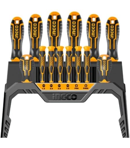 INGCO Set Cacciaviti Giraviti di precisione a taglio croce Kit 14pz con supporto HKSD1428