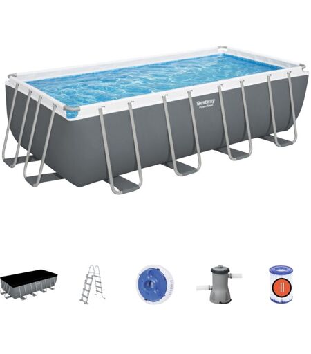 Piscina fuori terra rettangolare 488x244x122 cm con pompa filtro e accessori inclusi Porta il divertimento direttamente nel tuo giardino con la piscina Power Steel rettangolare da 488 cm, una soluzione robusta e completa pensata per famiglie numerose e per chi desidera una vera esperienza di balneazione domestica. Le dimensioni generose e la profondità da 122 cm garantiscono spazio sufficiente per nuotare, rilassarsi o giocare in compagnia. Struttura solida e durevole La struttura in acciaio zincato e verniciato con connettori a “C” assicura elevata stabilità e resistenza alla corrosione. Il telo è in PVC poliestere a 3 strati, progettato per sopportare sollecitazioni e usura prolungata nel tempo. Tutto incluso per un’estate senza pensieri Il set comprende una pompa filtro a cartuccia da 3.028 litri/ora (con tubi e raccordi), un telo di copertura per proteggere l’acqua da sporco e foglie, e una scaletta resistente per un accesso agevole e sicuro. Il montaggio non richiede attrezzi, ...