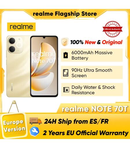 Realme Note 70T 4g Smartphone Android Versione globale Batteria 6000Mah Display 6,74" 90Hz Fotocamera 13Mp Ai Ip54
