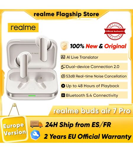 Realme Buds Air 7 Pro Ai Auricolare Bluetooth 53Db 5000Hz Cancellazione del rumore Bt 5.4 48 ore di durata della batteria Hi-Res Lhdc 5.0 Ip55 Nuovo