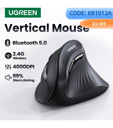 Mouse verticale UGREEN Wireless Bluetooth5.0 2.4G ergonomico 4000DPI 6 pulsanti muti per MacBook Tablet laptop Computer PC Mouse ...