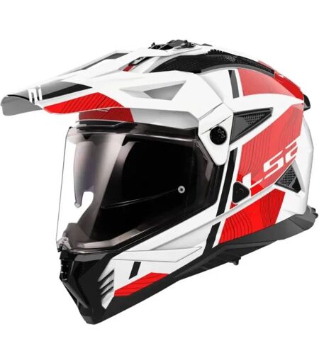 Casco Integrale On-Off Touring Ls2 MX702 Pioneer II Hill Bianco Rosso Lucido L