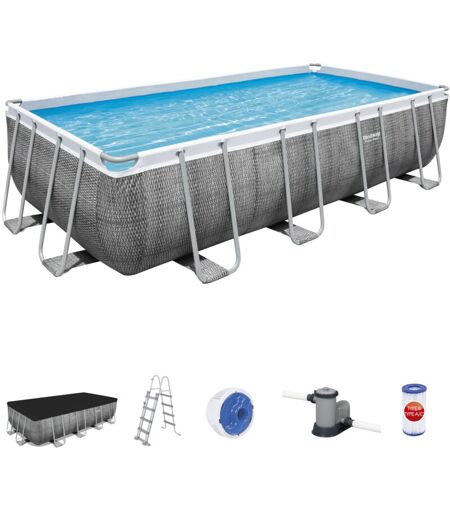 Bestway Piscina Fuori Terra Power Steel Rattan 549x274x122 cm con Pompa Filtro a Cartuccia 5.678 l/h con Copertura e Scaletta