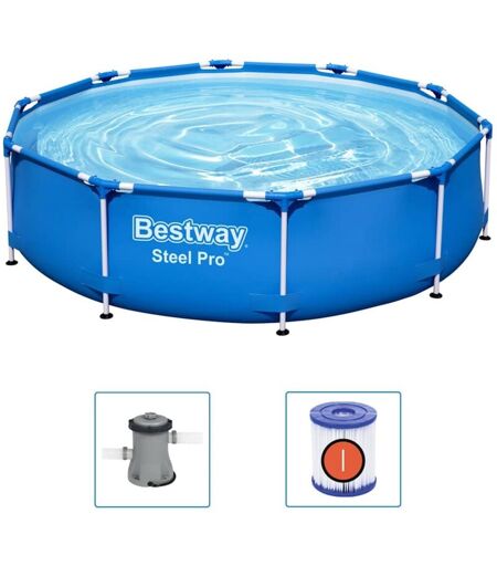 Vi divertirete un mondo con la famiglia e gli amici in questa piscina Steel Pro della Bestway. La forma rotonda offre più spazio per nuotare e giocare. L'elegante piscina ha pareti rinforzate realizzate in Tritech, un materiale rinforzato a 3 strati composto da resistente PVC laminato e maglia in poliestere. Grazie al telaio in acciaio di elevata qualità e alle pareti laterali rinforzate, la piscina non interrata risulta altamente stabile e resistente. Inoltre, il telaio della piscina è dotato del sistema FrameLink, garantendo un collegamento sicuro e affidabile dei tubi. Questa piscina può essere montata rapidamente e in modo facile. Basta appoggiare la piscina su una superficie piana, assemblare il telaio e quindi riempire la piscina con acqua. Grazie alla presenza della valvola di scarico, l'acqua può essere scaricata facilmente e rapidamente. La pompa filtrante elettrica è parte integrante del sistema di circolazione e aiuta a mantenere l'acqua pulita. La cartuccia filtrante ...