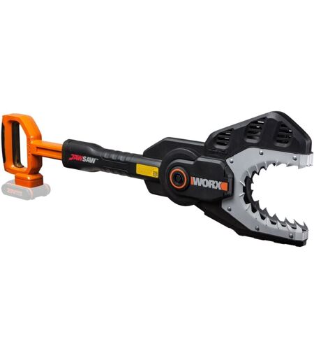 WORX WG329E.9, 20V (senza batteria e caricabatterie), segare rami in modo facile e sicuro sul pavimento? Non e' un problema con la sega a mascella. Lo speciale paracatena previene lo scivolamento, il team in acciaio ha una presa salda sul pezzo e lo speciale design circonda la catena. ...